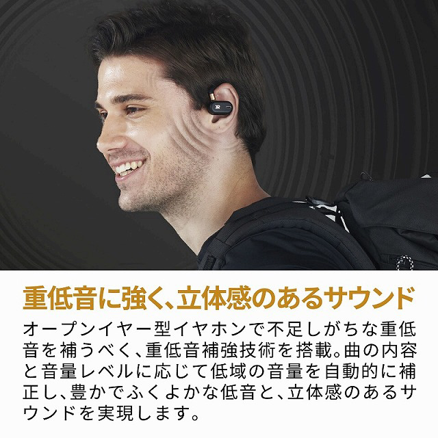 オープンイヤー型イヤホンで不足しがちな重低音を補うべく、重低音補強技術を搭載。