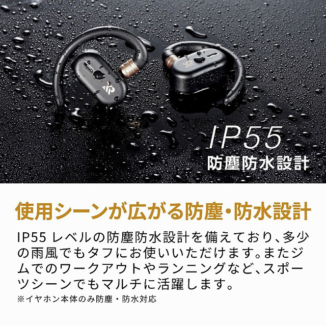 | 仕様1 | [対応プロトコル]AVRCP1.6、HSP1.2、HFP1.7、A2DP 1.3.1、LE Audio Ready [ドライバー規格]14.2mm チタンコートドライバー [マイク規格]4 x MEMS(片側 2 x MEMS)※Voice Chamber ボイスノイズキャンセリング機能 [最大通信距離]15m / 最大80m [防塵・防水レベル]IP55(イヤホン本体のみ) |