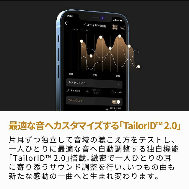 片耳ずつ独立して音域の聴こえ方をテストし、一人ひとりに最適な音へ自動調整する独自機能「TailorID TM 2.0」搭載。