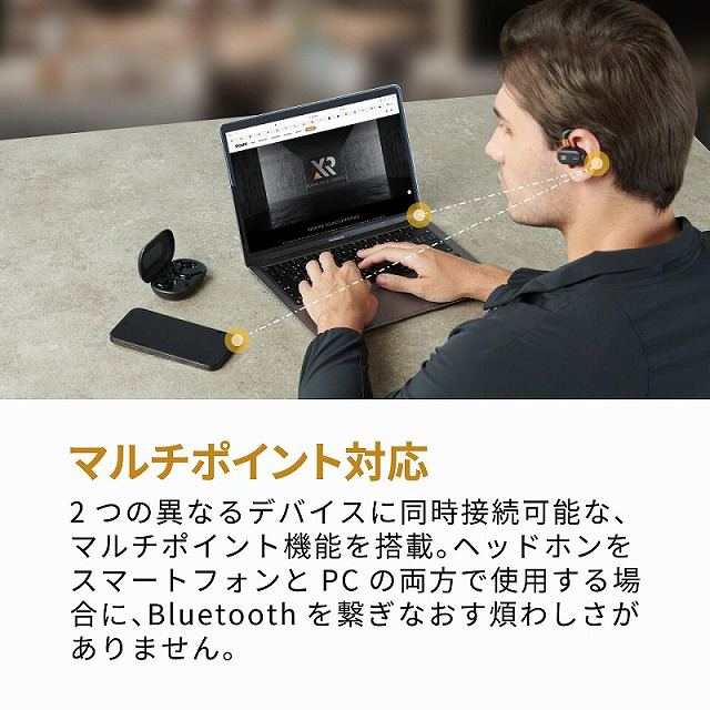 ヘッドホンをスマートフォンとPCの両方で使用する場合に、Bluetoothを繋ぎなおす煩わしさがありません。