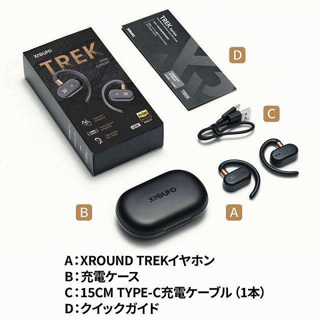 | 付属品 | XROUND TREKイヤホン、充電ケース、15cm Type-C充電ケーブル(1本)、クイックガイド |