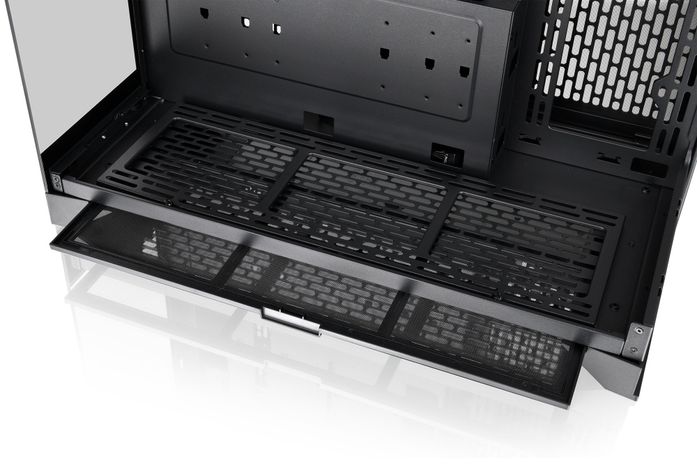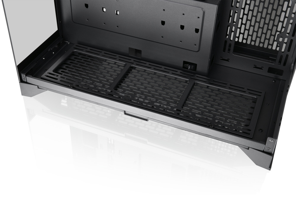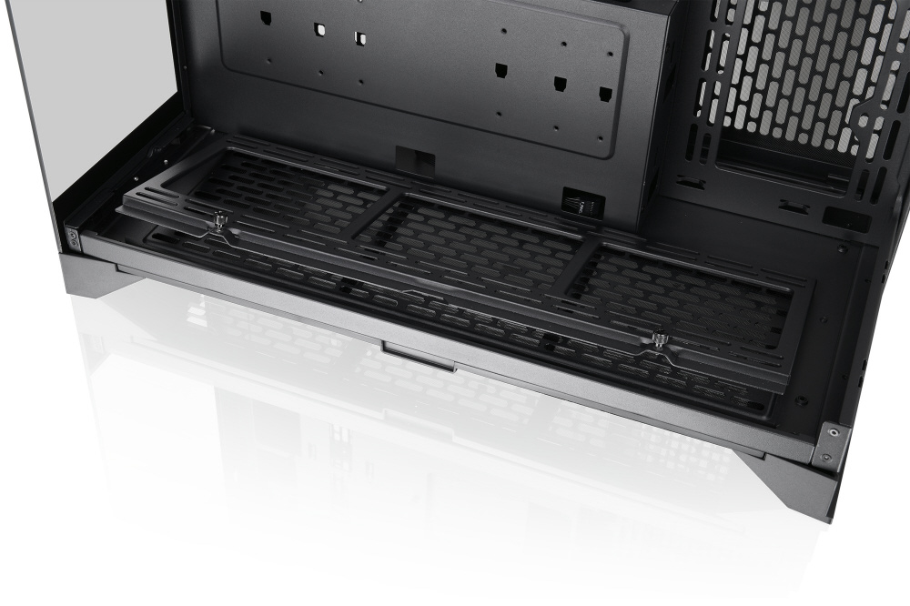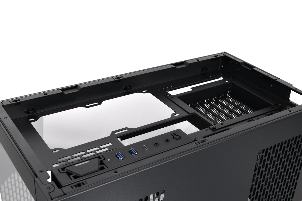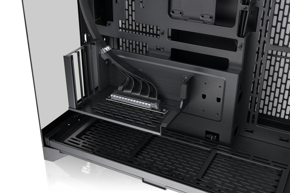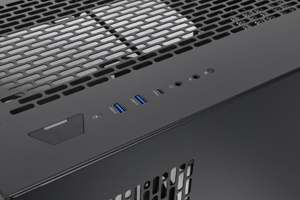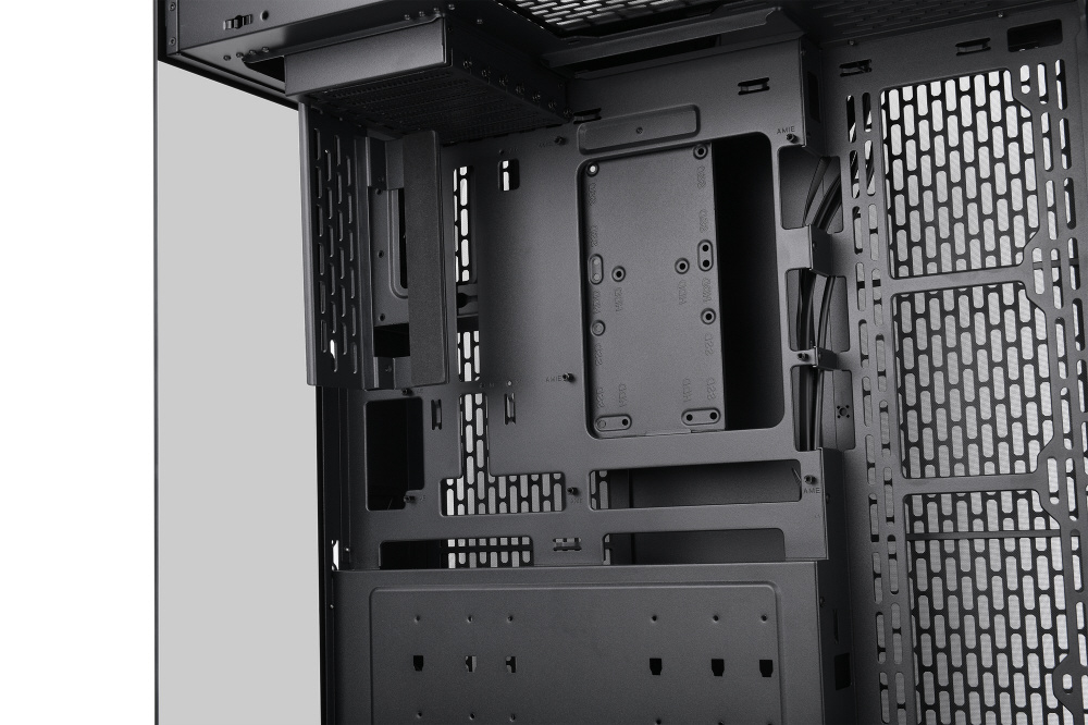 3面強化ガラスパネルのピラーレスデザインを採用。背面コネクタ設計のマザーボードに対応し、冷却性と拡張性に優れたミドルタワー型PCケース