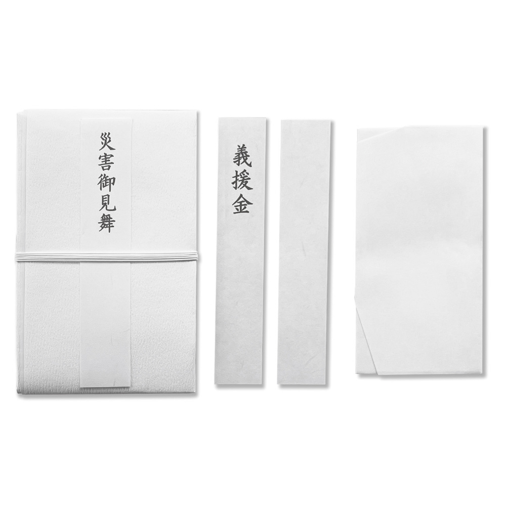 仕様1 | ■サイズ:130×205mm■金額目安:3万円〜■短冊:3枚付き(災害御見舞/義援金/無地)■中袋:斜折型 |