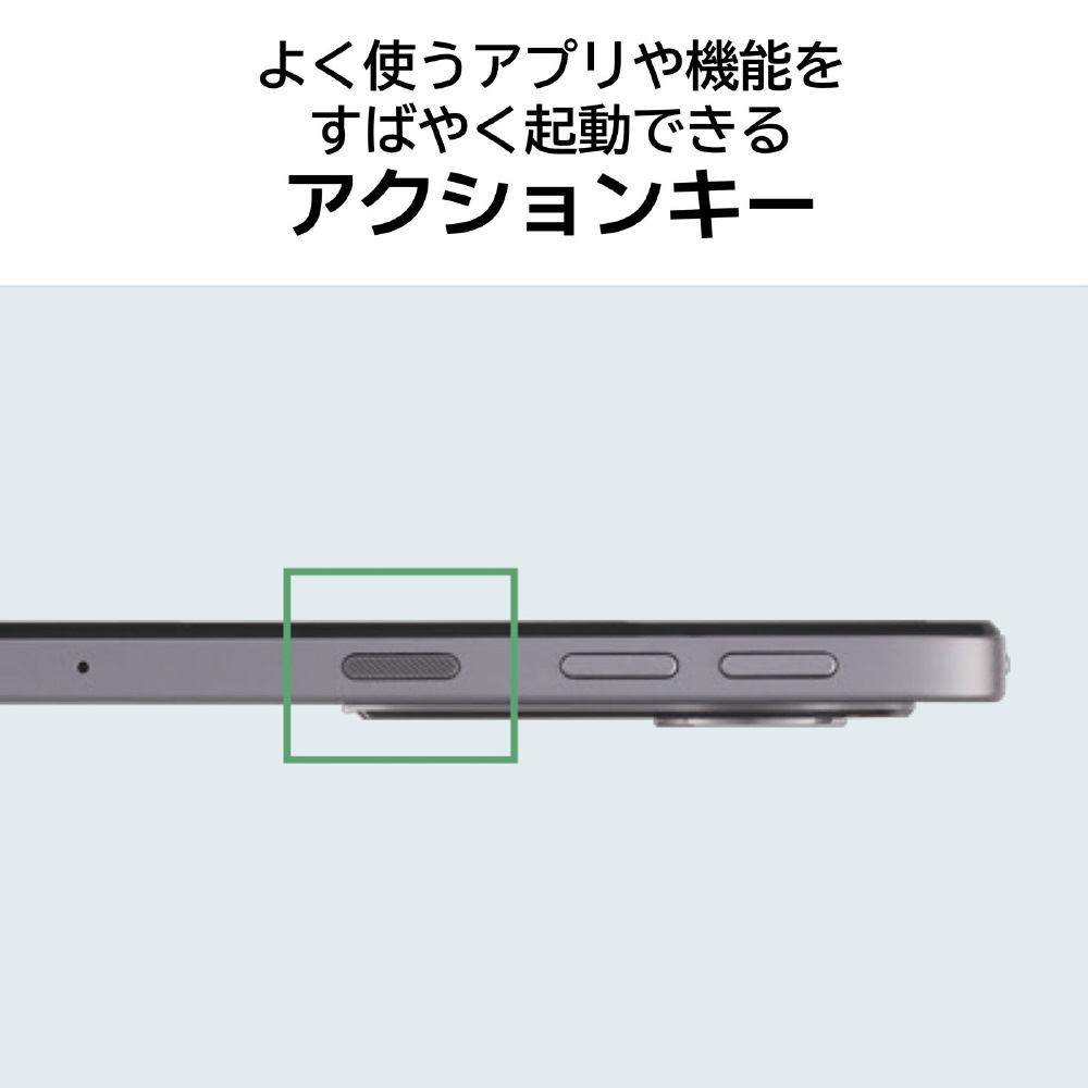 ■8GBメモリと約256GBの大容量ストレージを搭載。さらに、最大1TBのmicroSDカード(exFAT)も利用できるので高画質な動画などを持ち運んで楽しめます。また、位置情報を利用したゲームを楽しめるGPS、よく使うアプリやWebページをすばやく起動できるアクションキー、Googleウォレットでクレジットカードでの支払いができるNFCなども内蔵しています。