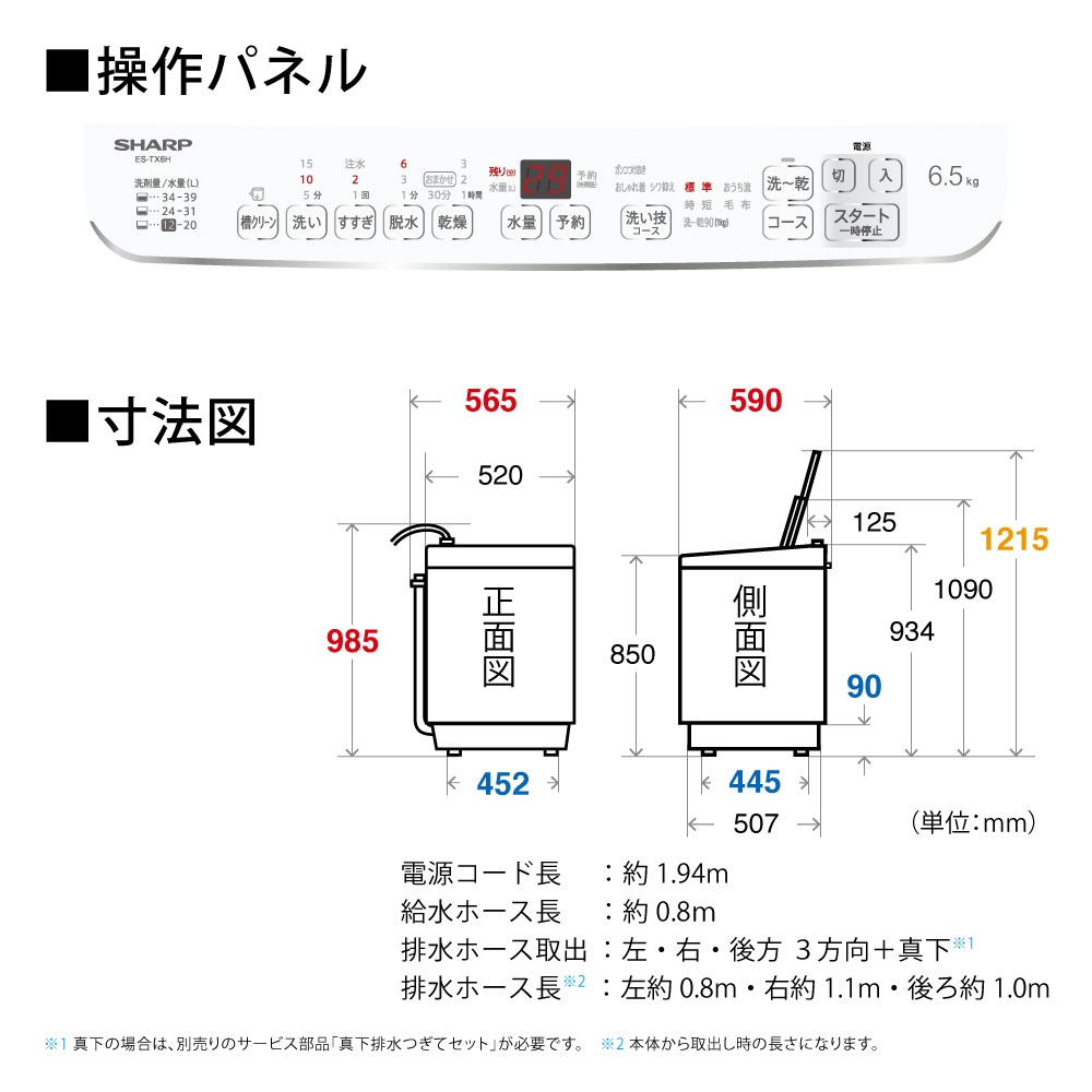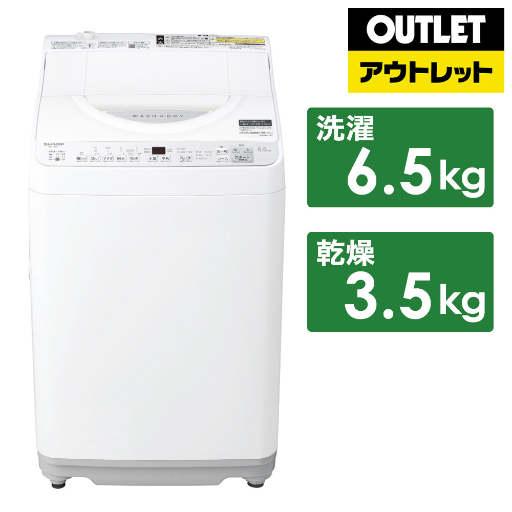 縦型洗濯乾燥機 ホワイト系 ES-TX6H-W [洗濯6.5kg /乾燥3.5kg /ヒーター乾燥(排気タイプ) /上開き]【生産完了品】