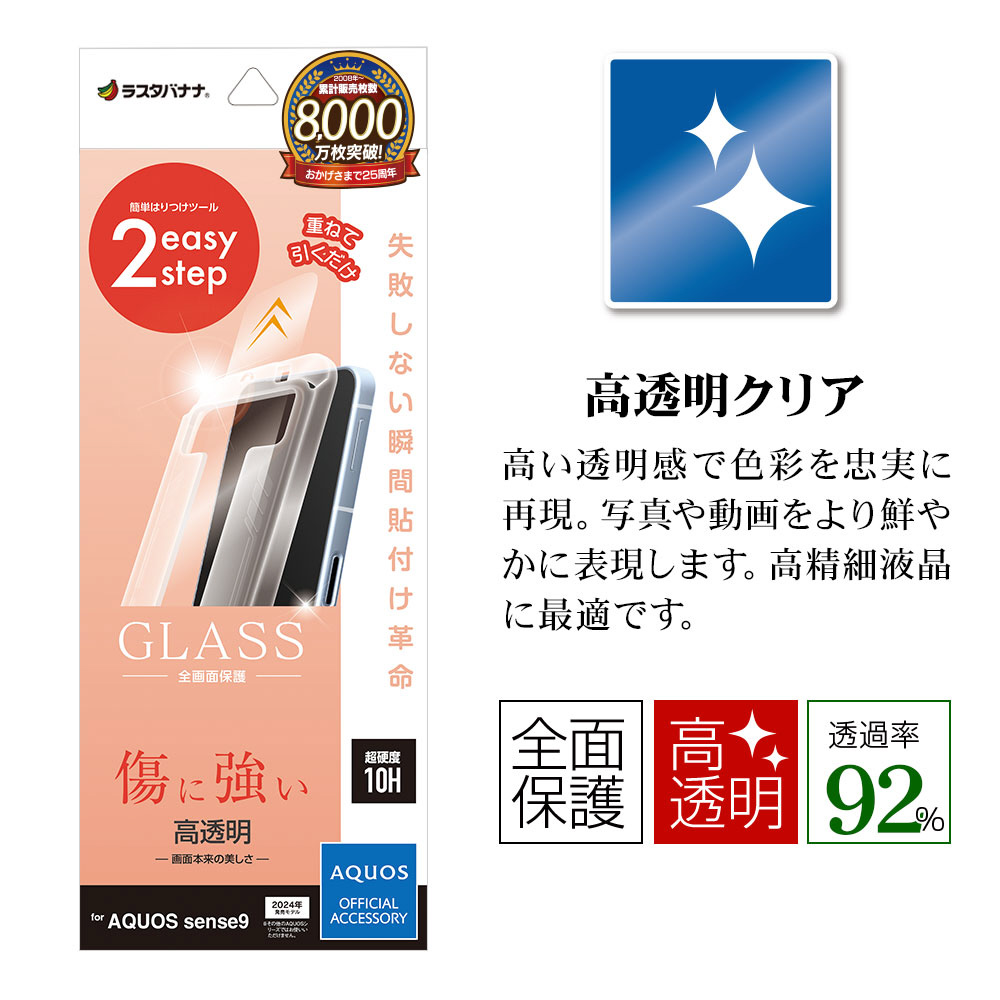 | 商品名 | AQUOS sense9 ガラスフィルム 瞬間貼り付け革命 高光沢 MTK4632AS9 【864】 |