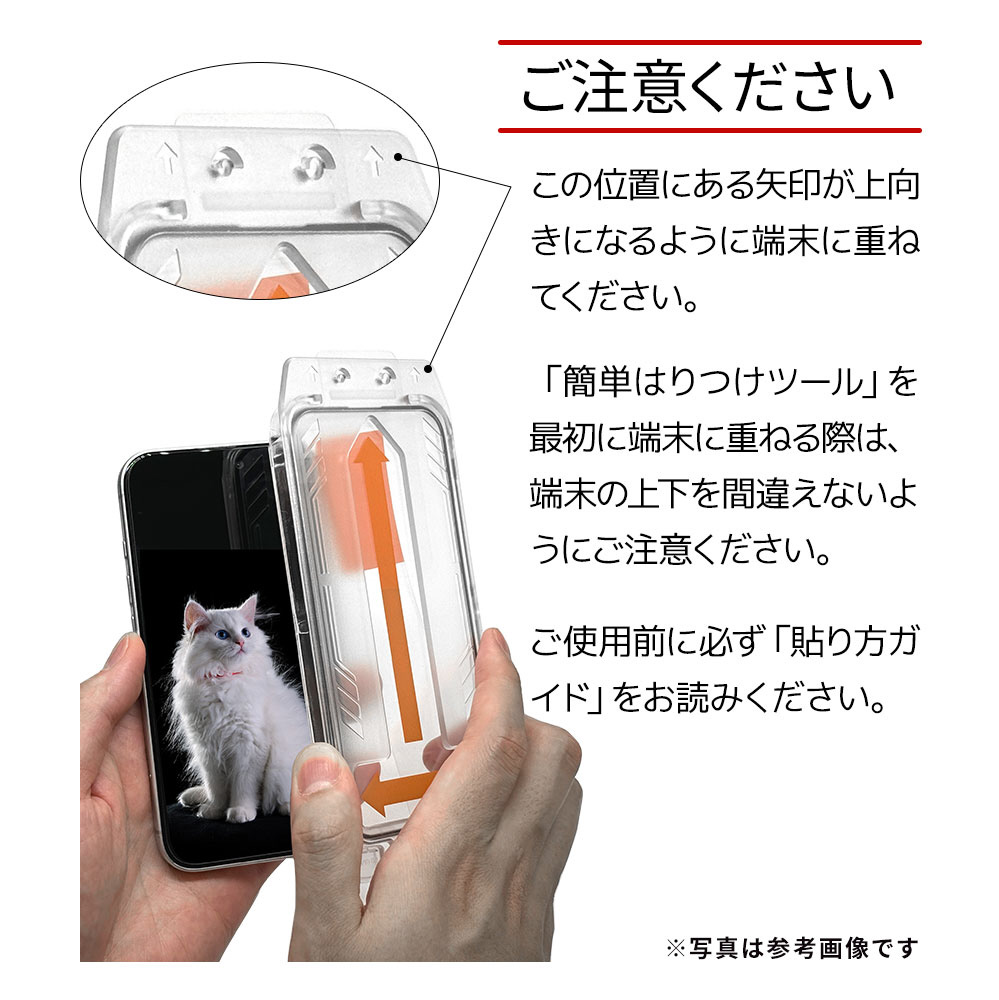 フィルムを引っ張り空気を抜くだけで失敗しない瞬間貼り付けの光沢ガラスフィルムです。