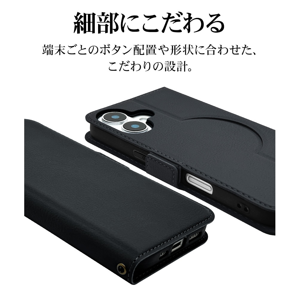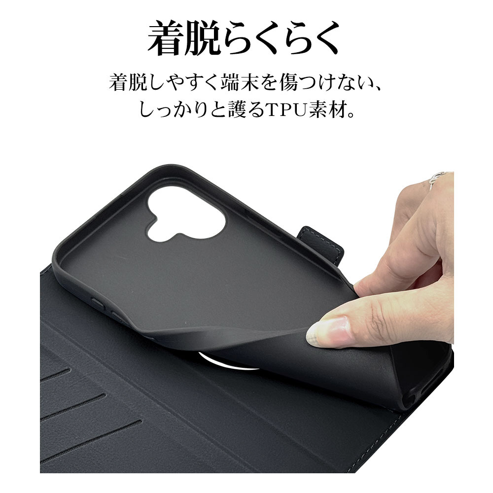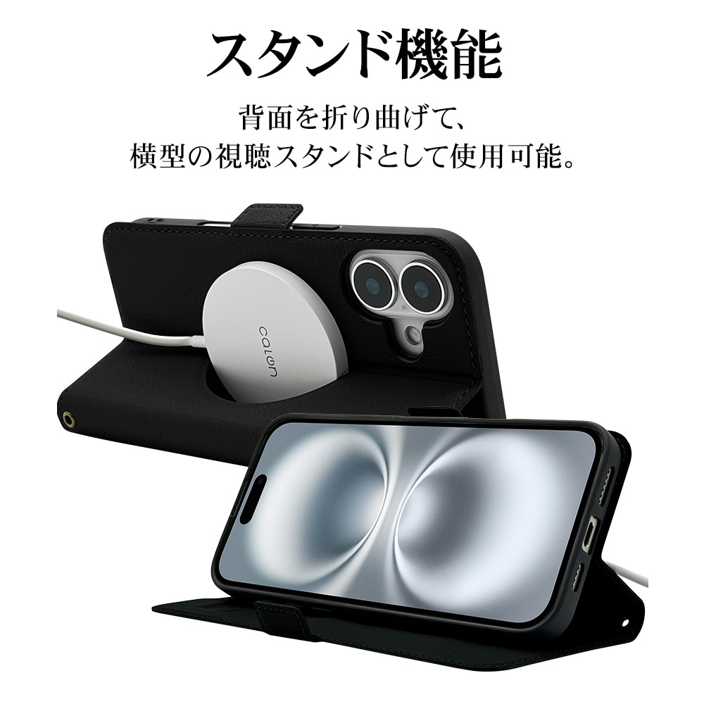 本製品は液晶画面側と背面側の両面を保護できるMagSafeリング付きの薄型で持ちやすい手帳型ケースです。