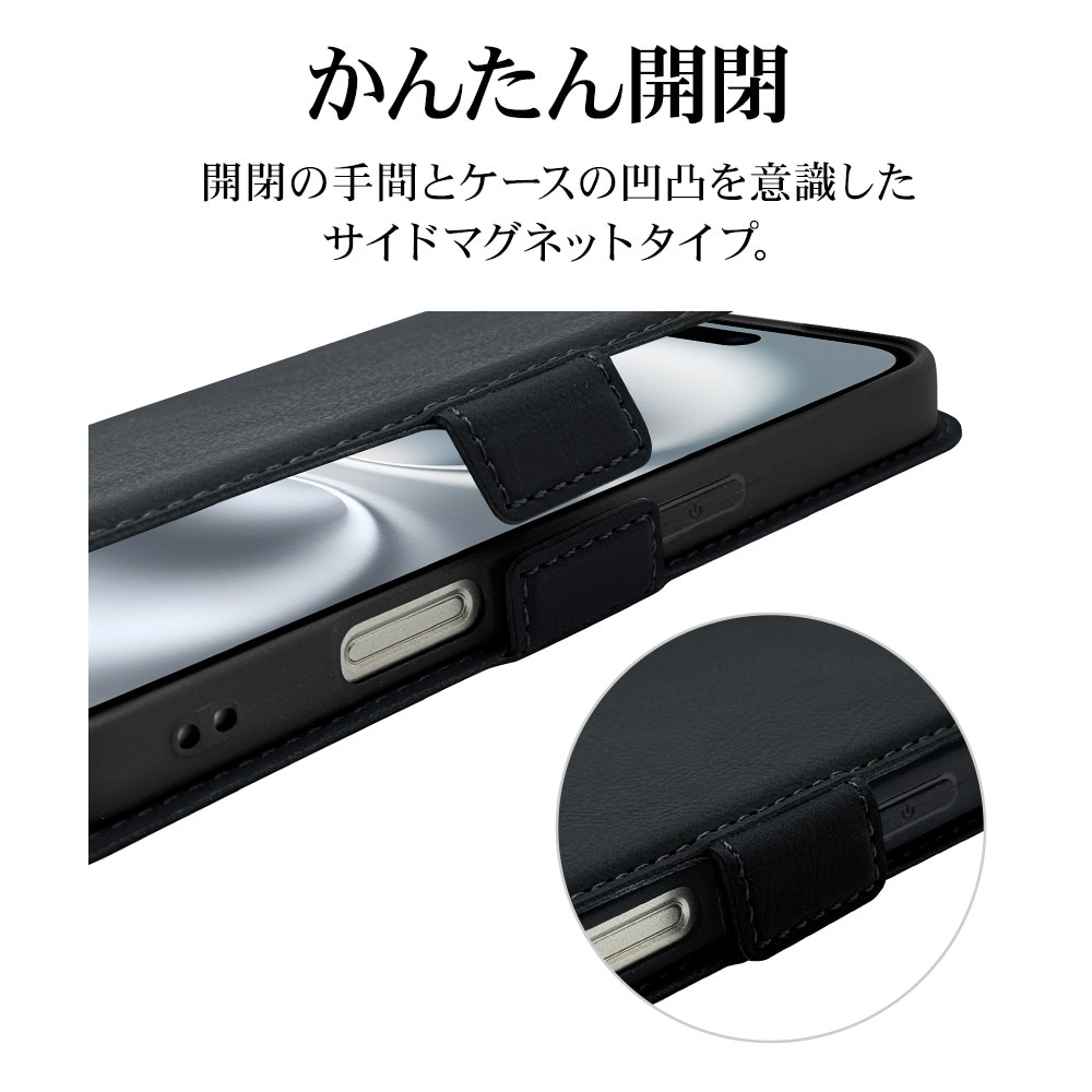 iPhone15/14/13 手帳型ケース サイドマグネット Magsafe対応 ブラック 8354IP361BSMMBK