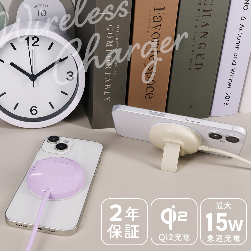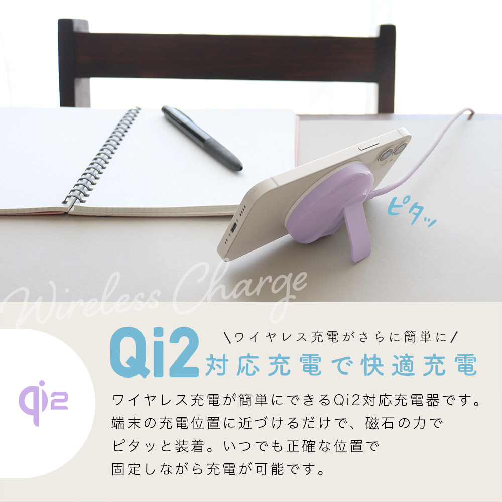 Qi2対応 マグネット式ワイヤレス充電器 スタンド付き ケーブルバンド付属