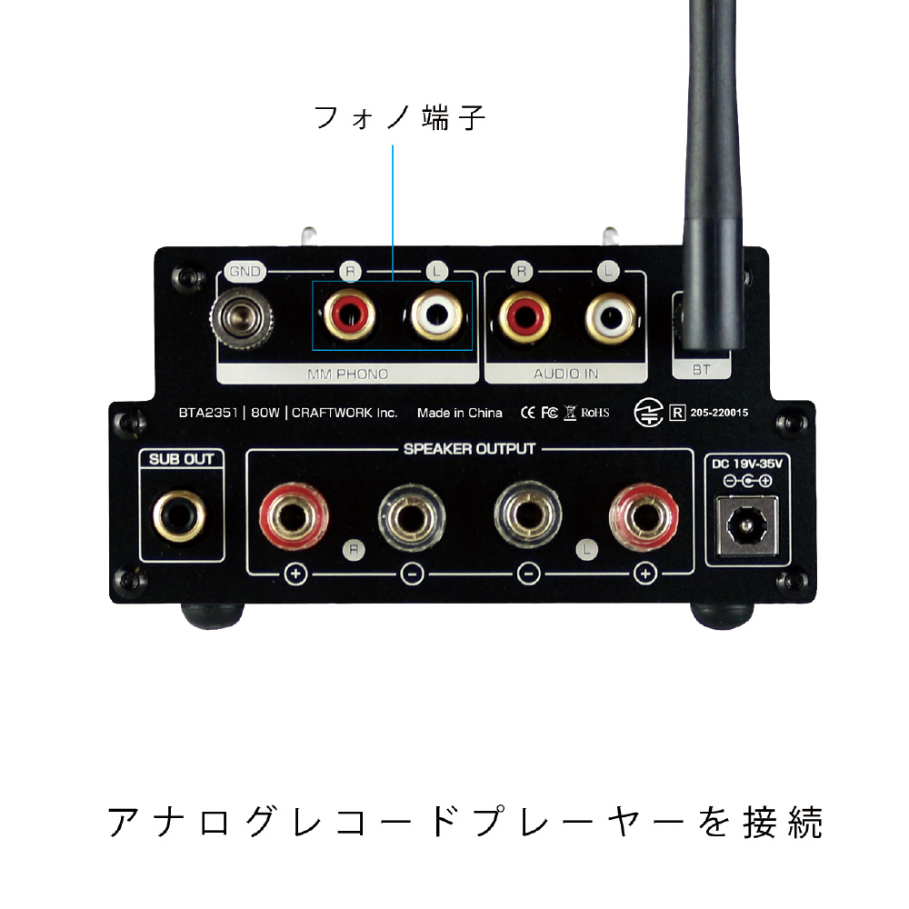 MM型フォノ入力端子を装備しており、アナログレコードプレーヤー(MMカートリッジ使用時のみ)を直接接続することが可能。