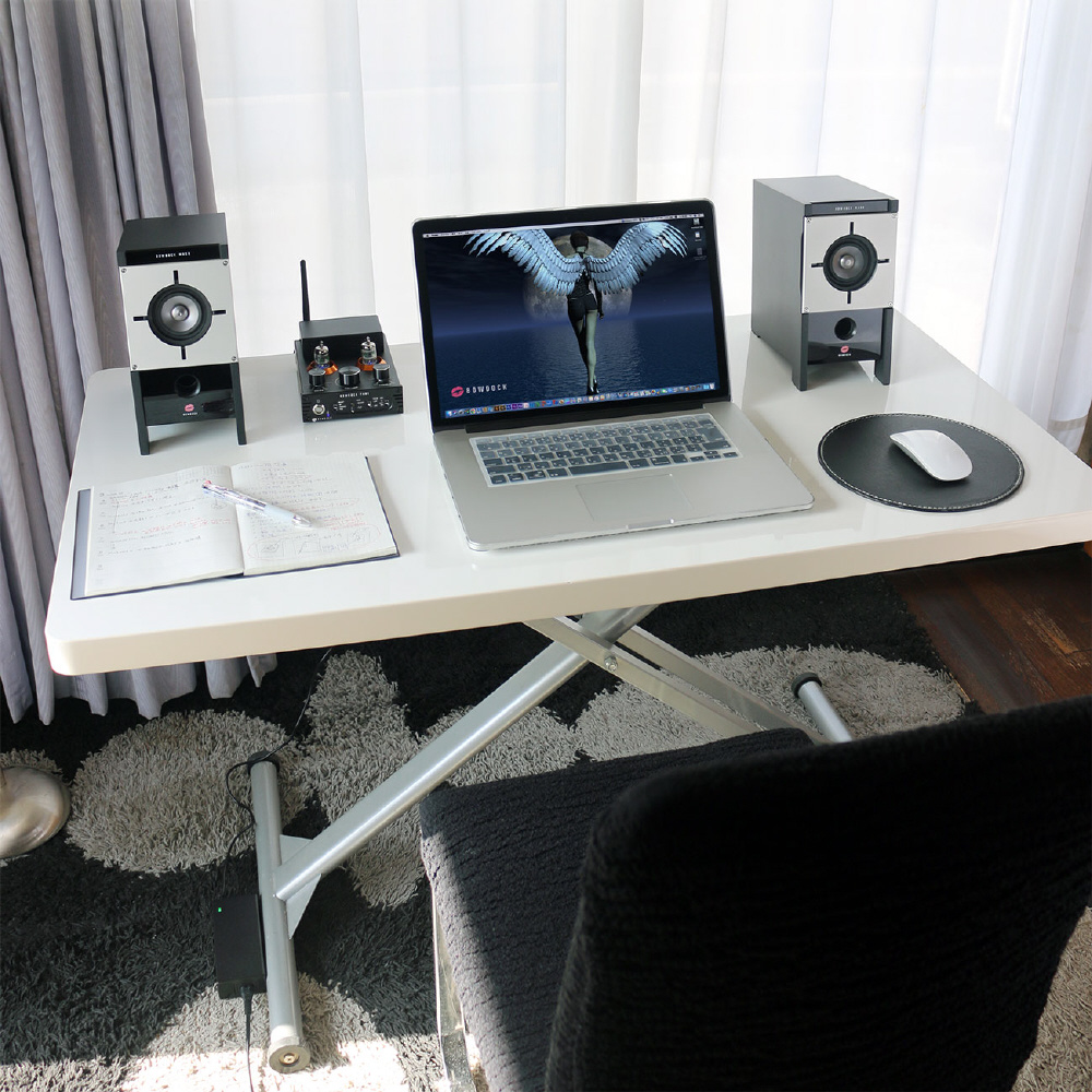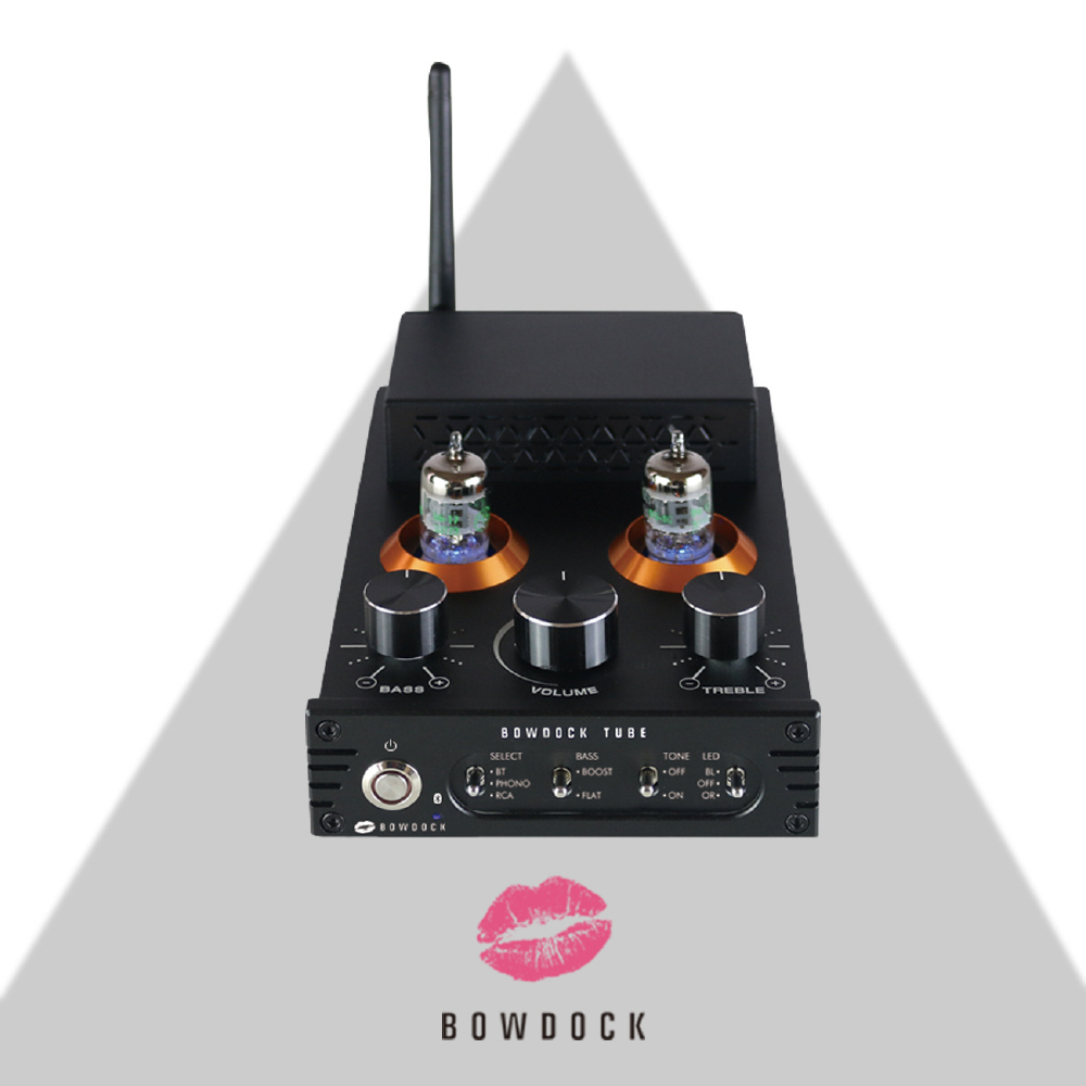 スピーカー内にアンプの機能を入れたブルートゥーススピーカーが人気ですが、BOWDOCK TUBEは118(W)×132(H)× 208(D)mmのコンパクトなボディで置き場所を選びません。真空管をデザインポイントとしてインテリアとしてもキュートな一品です。