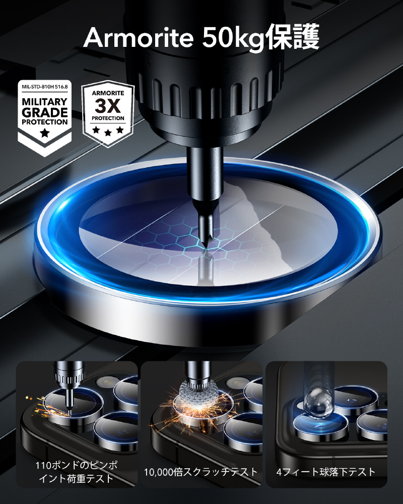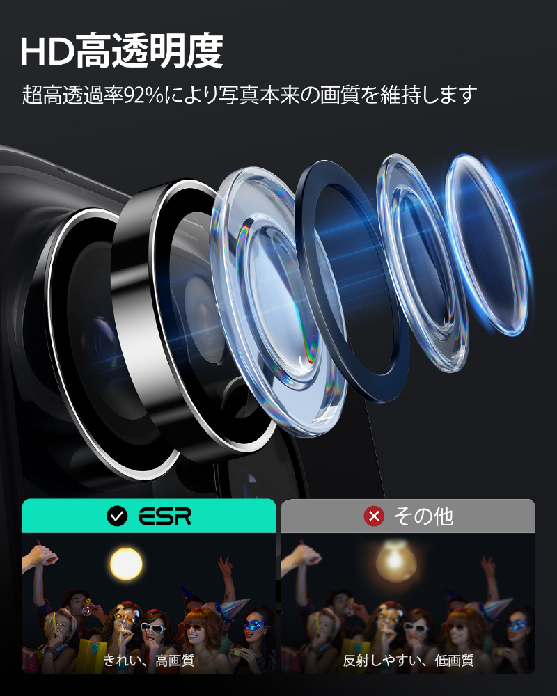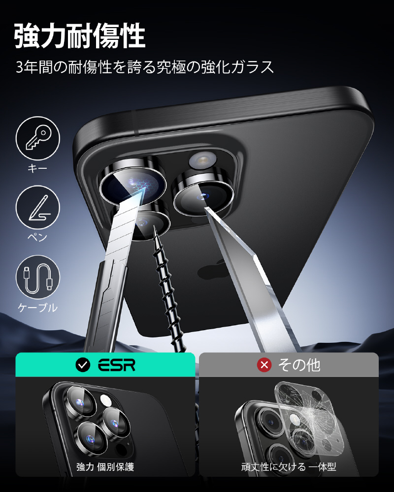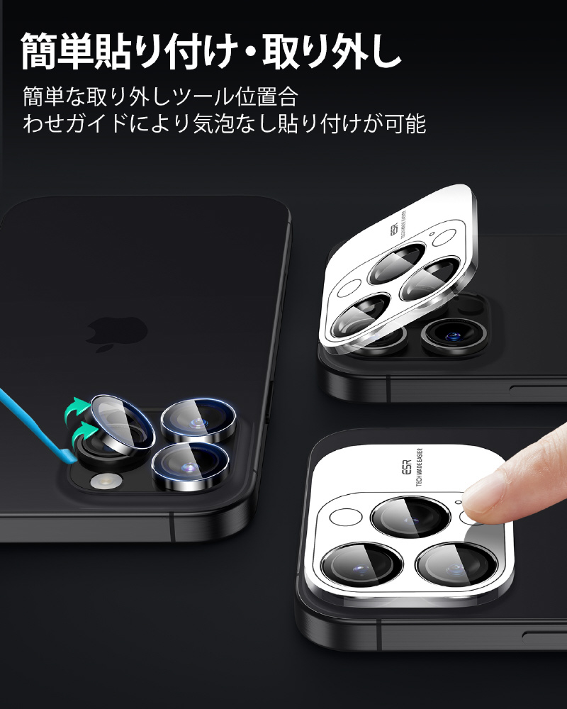 iPhone 16 Pro / 16 Pro Max 強化ガラスカメラレンズプロテクター ESR ブラック ArmoriteCameraLensProtectorsforiPhone16Pro16ProMax