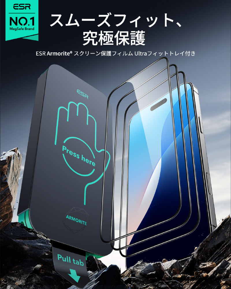 | 付属品 | ESR Armoriteスクリーン保護フィルム、フィットトレイ、クリーニングキット、マニュアル |