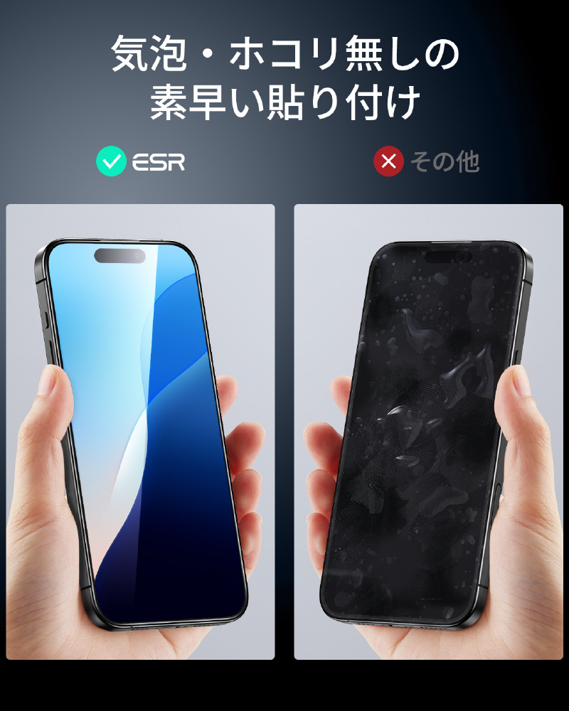 高度なマイクロナノ粘着技術により、透明な画面の品質を維持しながら、気泡や埃の無い完璧貼り付けを可能にします。