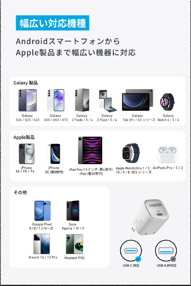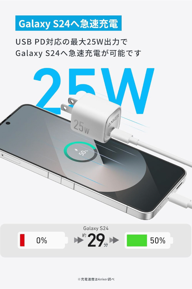 急速充電器 Anker Charger (25W) with USB-C & USB-C ケーブル ホワイト B2656121 [USB Power Delivery対応 /1ポート]