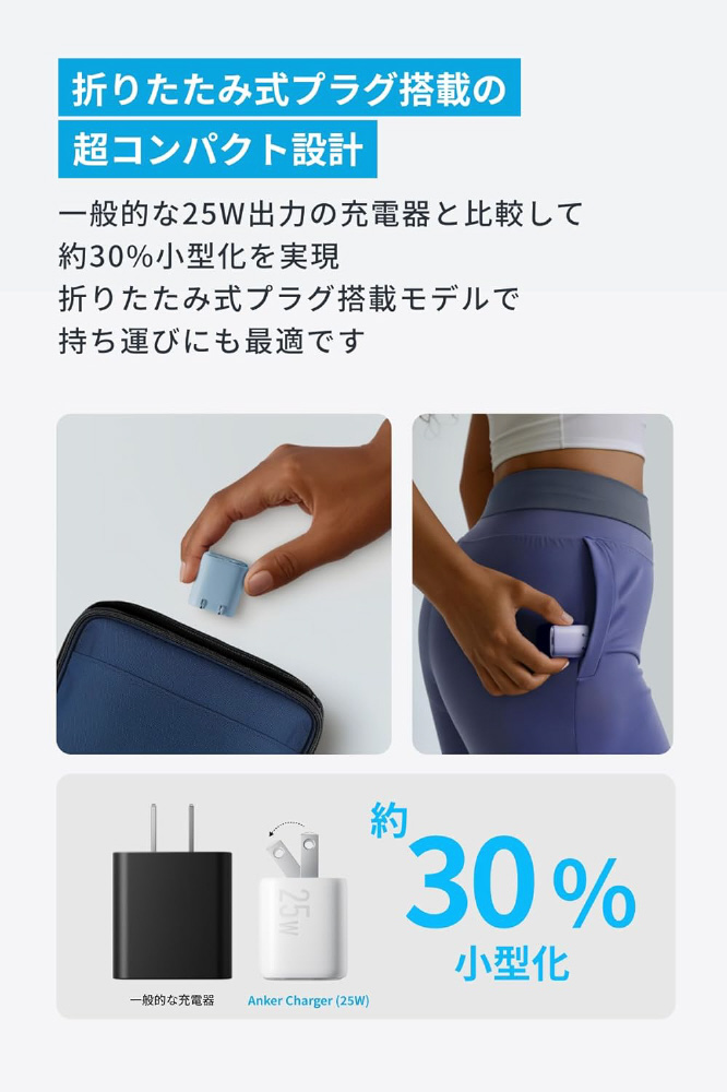 折りたたみ式プラグを採用した超コンパクト急速充電器