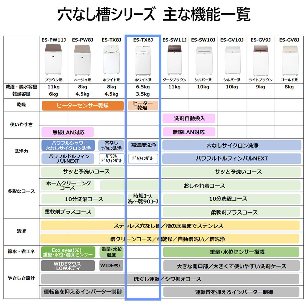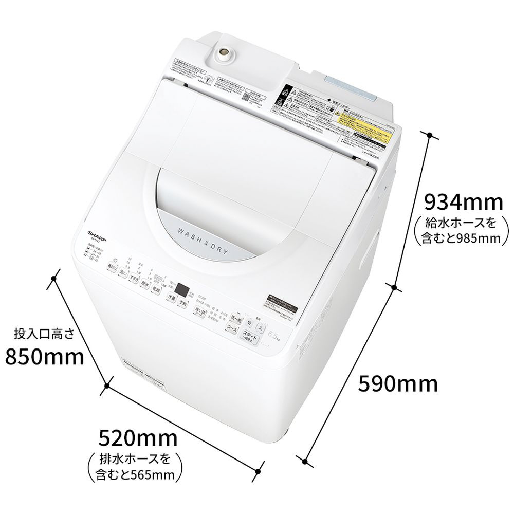 | 商品名 | 縦型洗濯乾燥機 ホワイト系 ES-TX6J-W [洗濯6.5kg /乾燥3.5kg /ヒーター乾燥(排気タイプ) /上開き] |