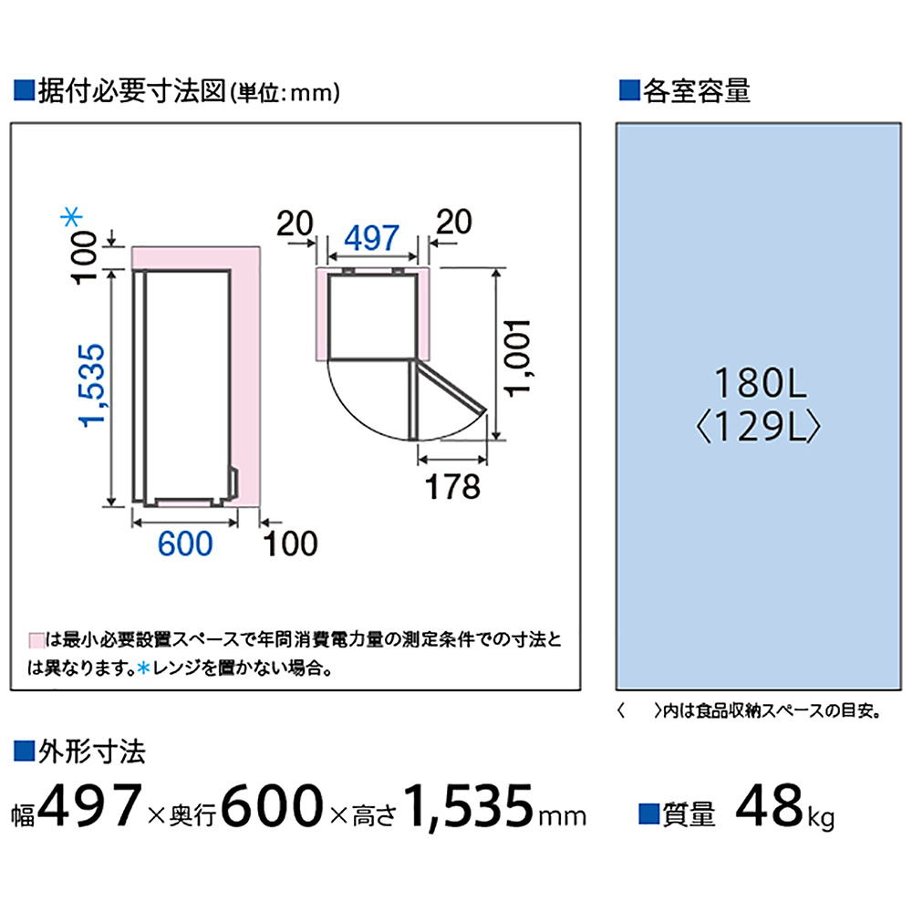 幅50cmクラス 大容量180L