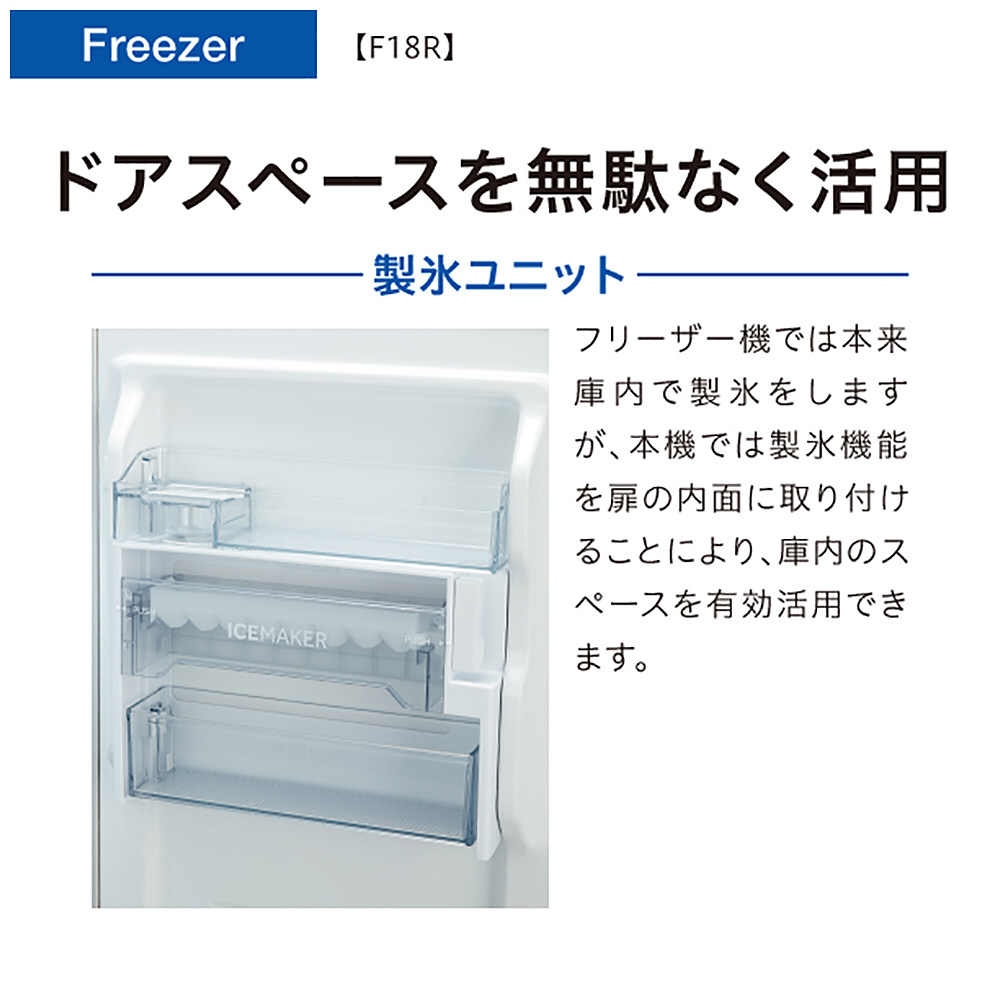 | 商品名 | 冷凍庫 クリアホワイト AQF-F18R-W [幅49.7cm /180L /1ドア /右開きタイプ /2024年] |
