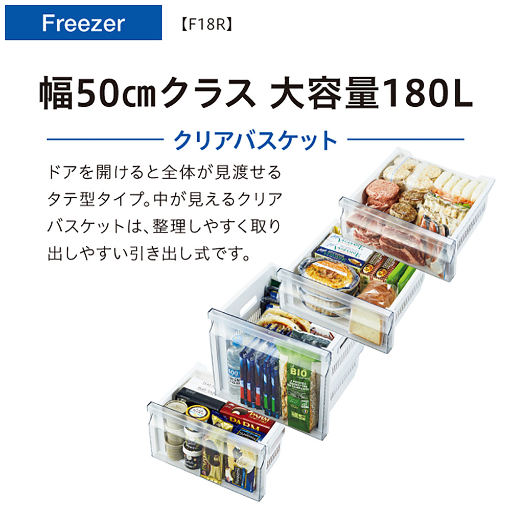 省エネ効率も備えた幅50cmクラス、大容量180L。