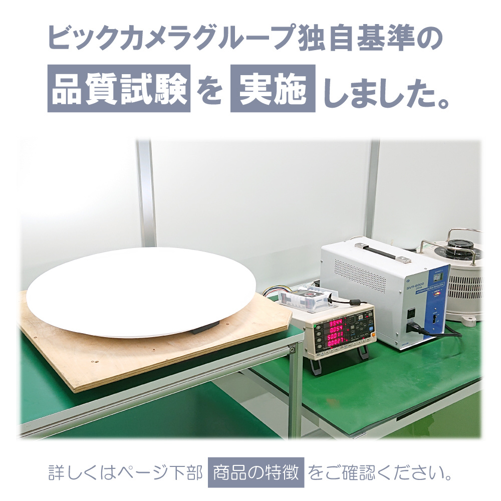 商品の品質を確保するため、ビックカメラグループの基準に従い第三者機関で品質試験を実施しました。ビックカメラグループの基準とは、メーカーの品質基準とは別に、実際の使用シーンを想定し「動作検証試験」「耐久試験」「安全確認試験」「振動・衝撃試験」の手法で製品の安全性・機能性・耐久性を確認します。