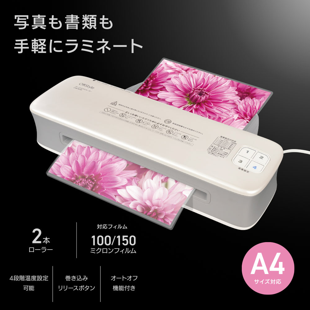 パーソナルラミネーター A4サイズ対応 OffiStyle ホワイト LAM-R245 [A4サイズ /2本]
