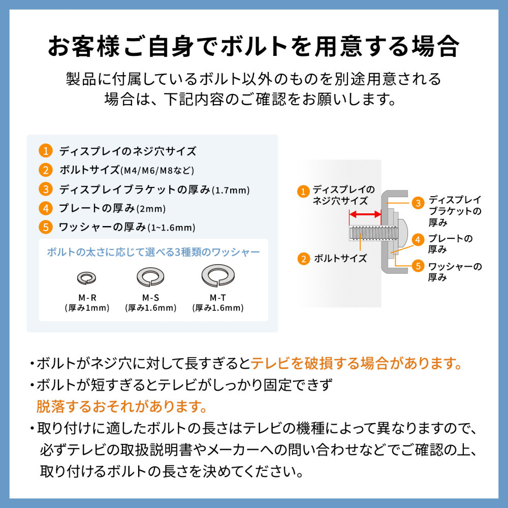 ●42〜75型までのディスプレイに対応しています。(ディスプレイ耐荷重40kg)