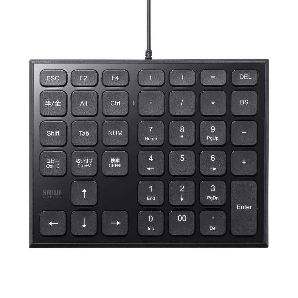 ■一般的なテンキーに搭載しているキーに加え、「ESC」「F2」「F4」「半角/全角」「Alt」「Ctrl」「Shift」「Tab」「コピー」「貼り付け」「検索」「(」「)」「=」「,」を追加しました。