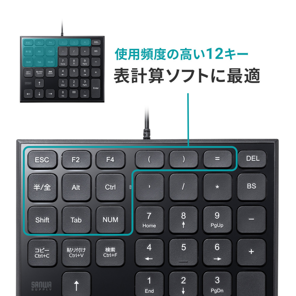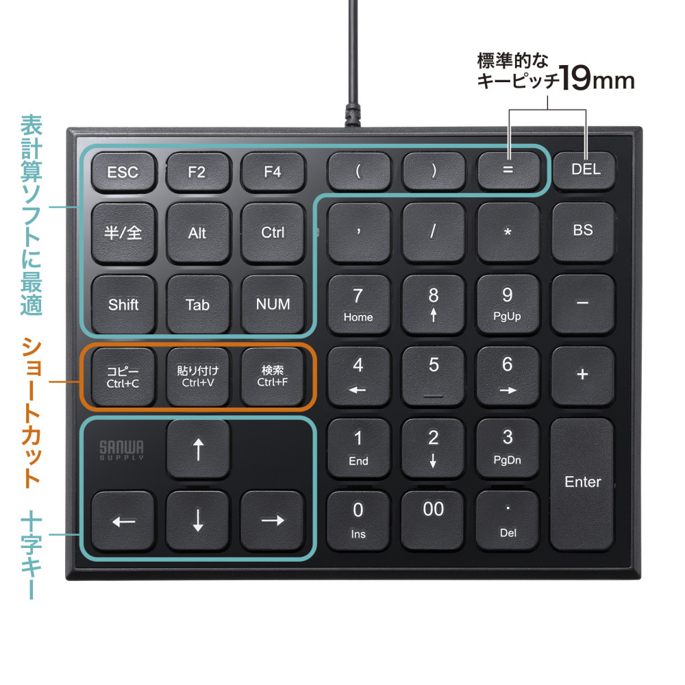 Excelに最適なショートカットキーを搭載した静音有線テンキー。
