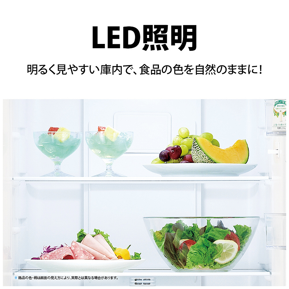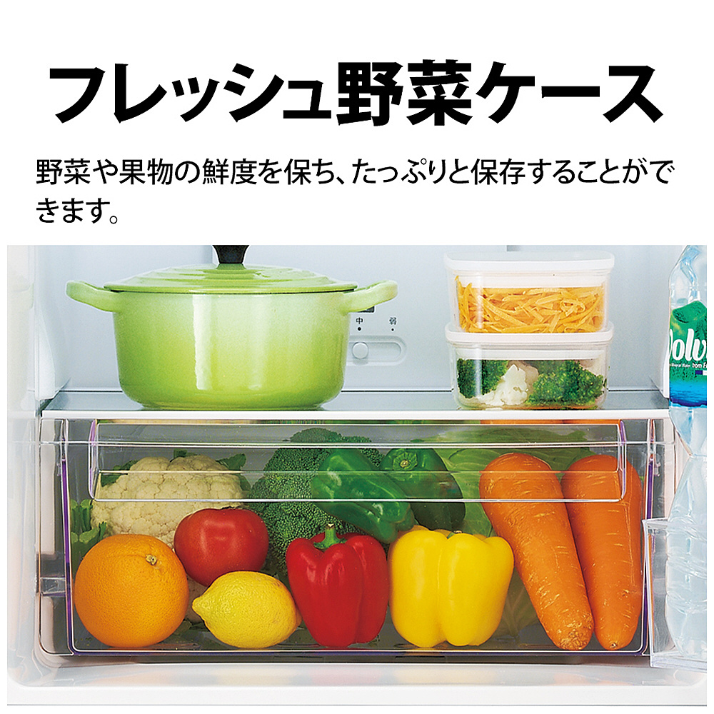 | 仕様1 | 食品収納スペースの目安 ・冷蔵室: <117L> ・うちフレッシュ野菜ケース: <18L> ・冷凍室: <67L> |