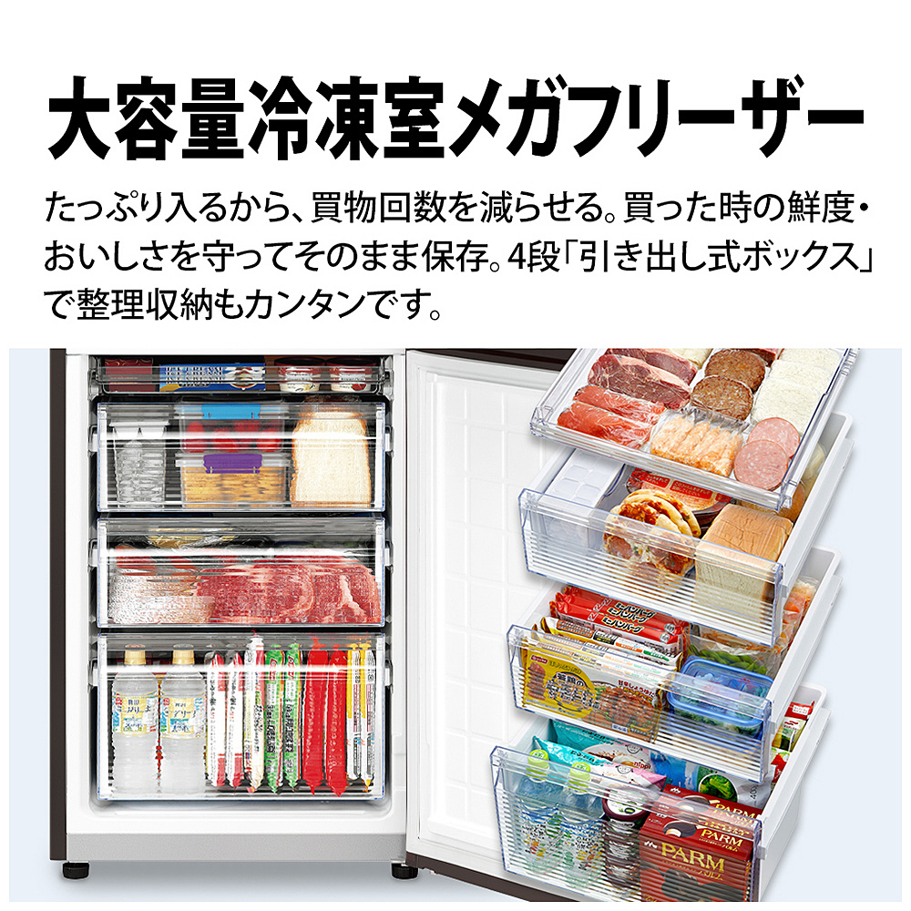 大容量冷凍室125L。整理収納しやすい4段ケース採用。