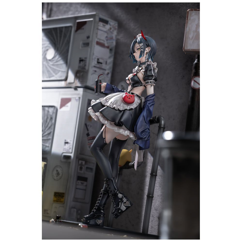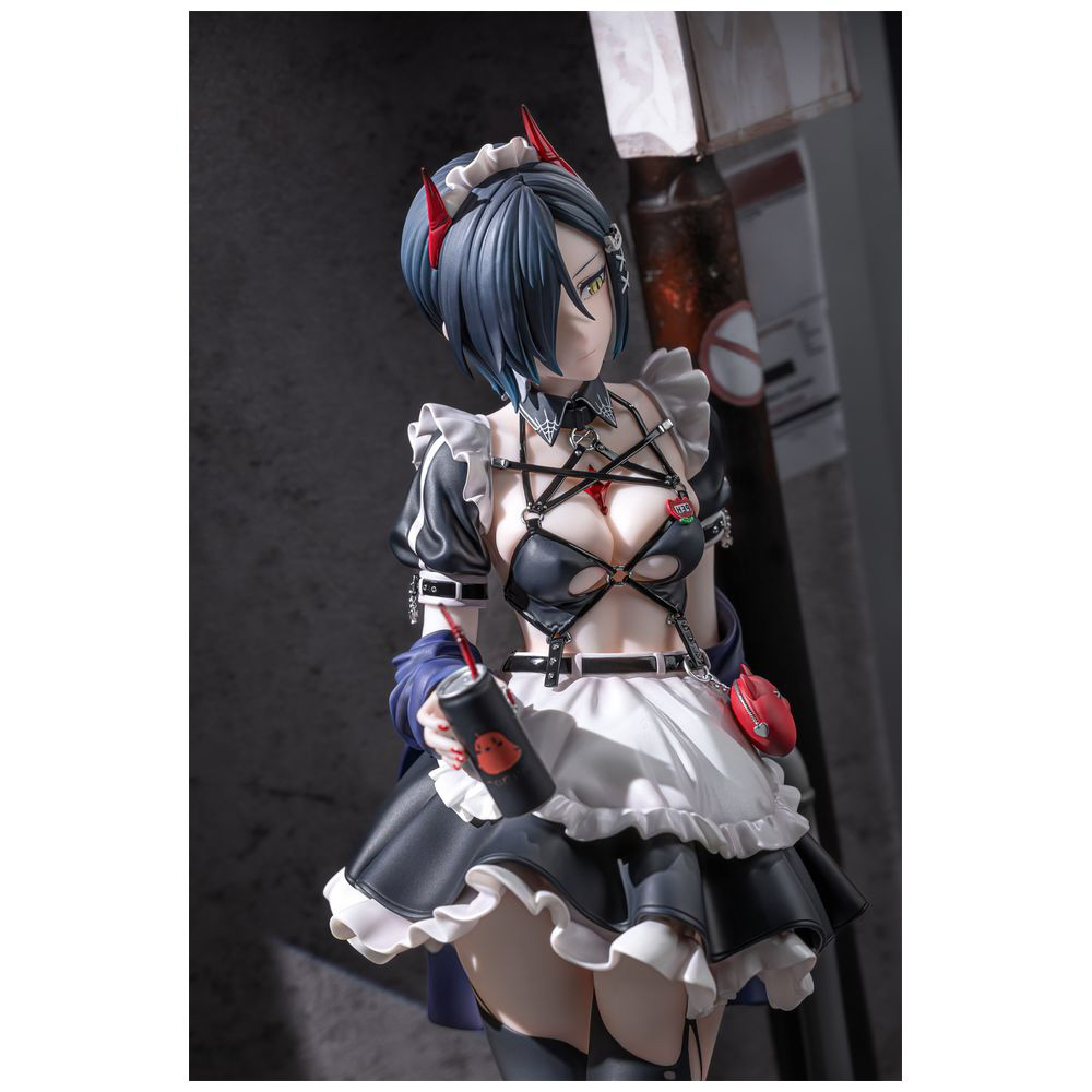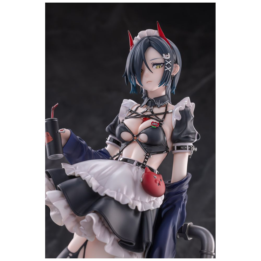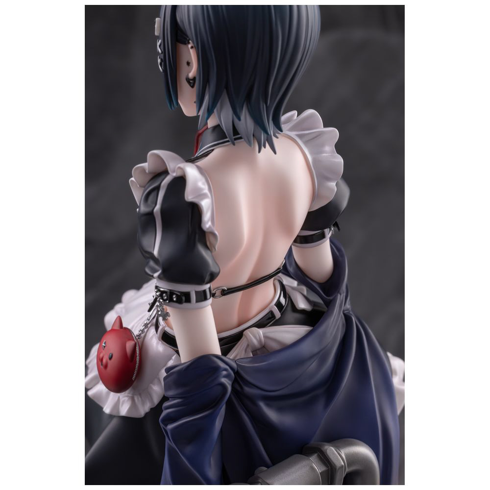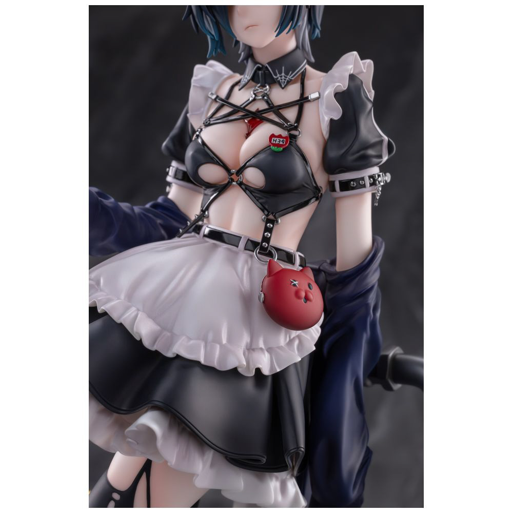 メイド姿でもクールな雰囲気を崩さず、独特なデザインのメイド服が彼女の魅力を一層引き立てています。
