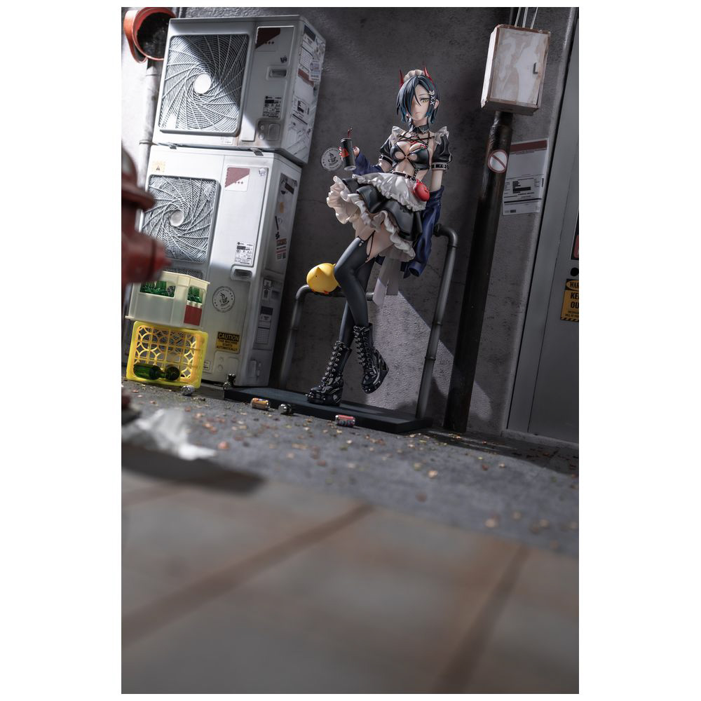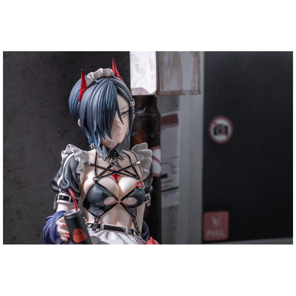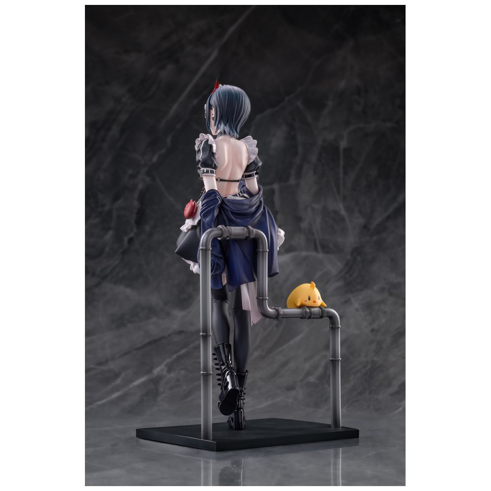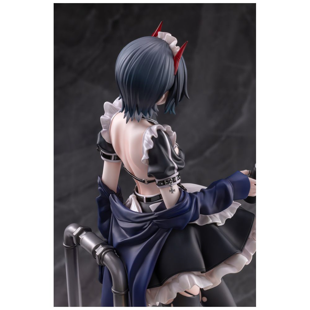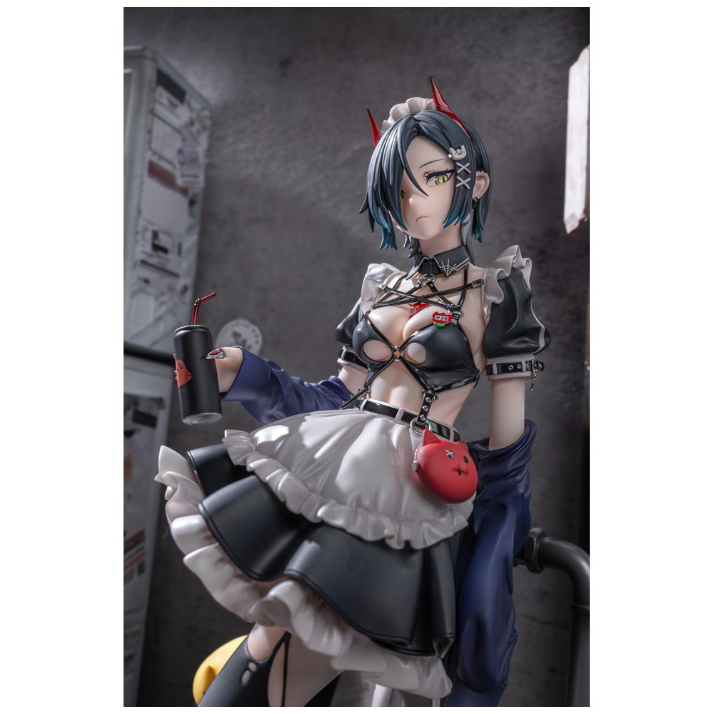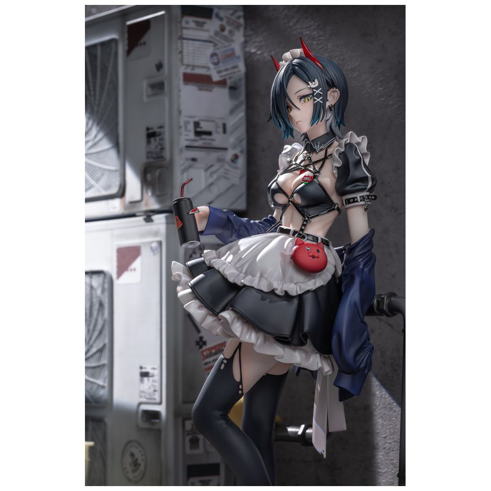 メイド姿でもクールな雰囲気を崩さず、独特なデザインのメイド服が彼女の魅力を一層引き立てています。