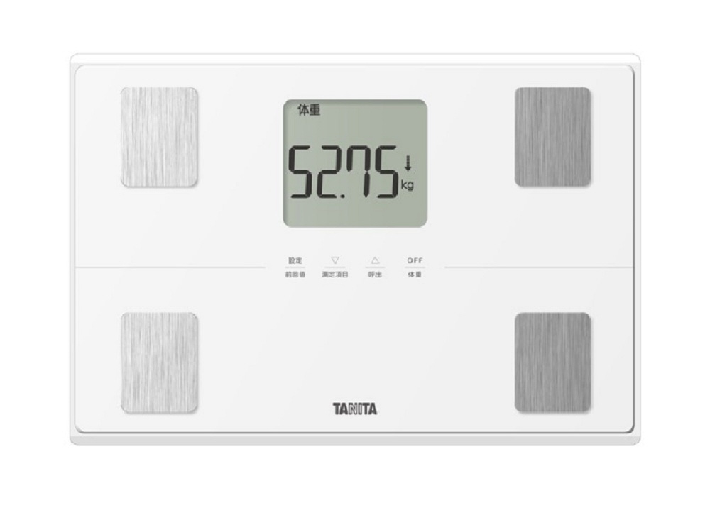 強化ガラスを採用したスタイリッシュな新デザインの体組成計