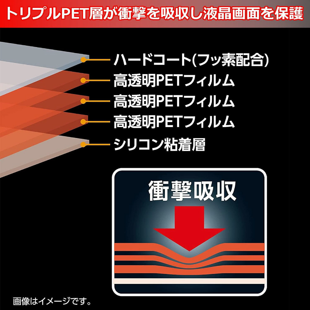 トリプルPET層が衝撃を吸収し液晶画面を保護