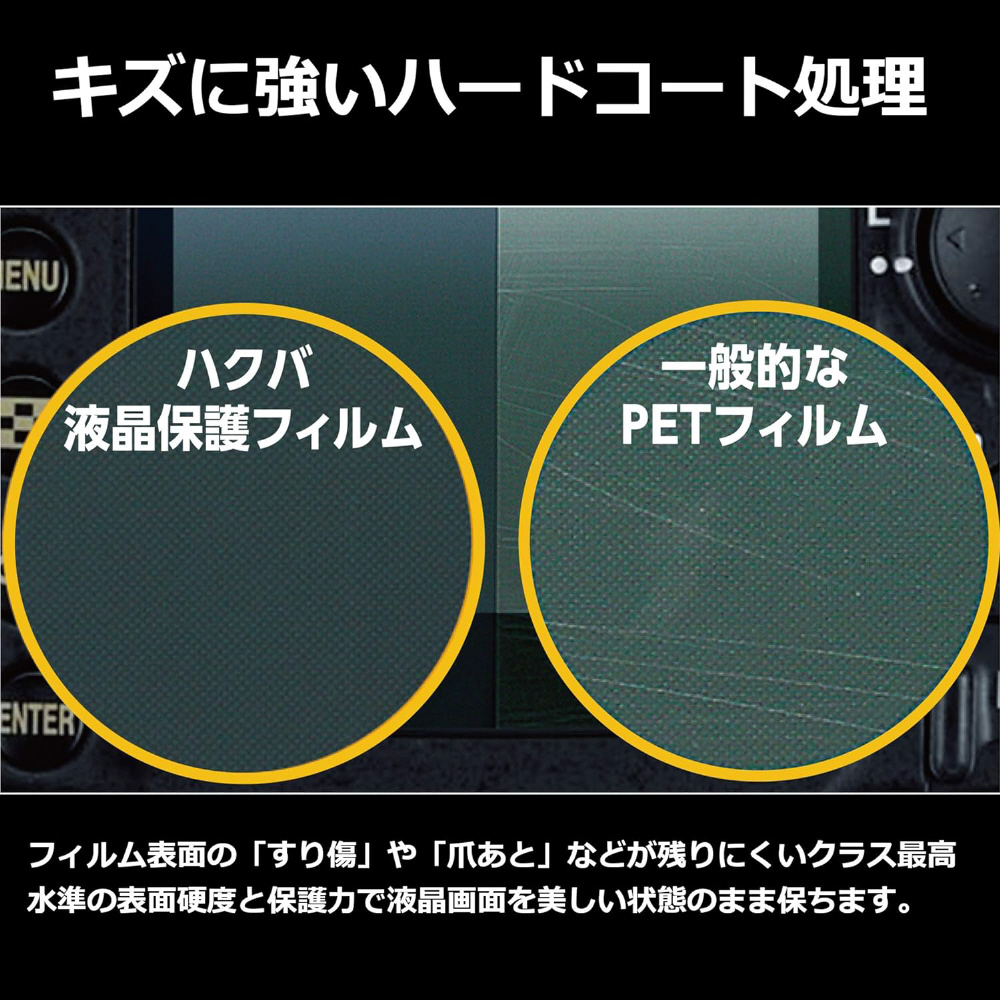 フィルム表面の「すり傷」や「爪あと」などが残りにくいクラス最高水準の表面硬度と保護力で液晶画面を美しい状態のまま保ちます。
