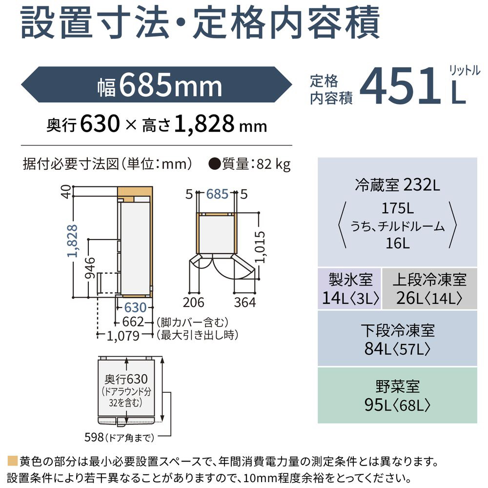 冷蔵庫 FVFシリーズ ハーモニーホワイト NR-FVF45S1-W [幅68.5cm /451L /6ドア /観音開きタイプ /2024年]【生産完了品】 【基本設置料金セット】