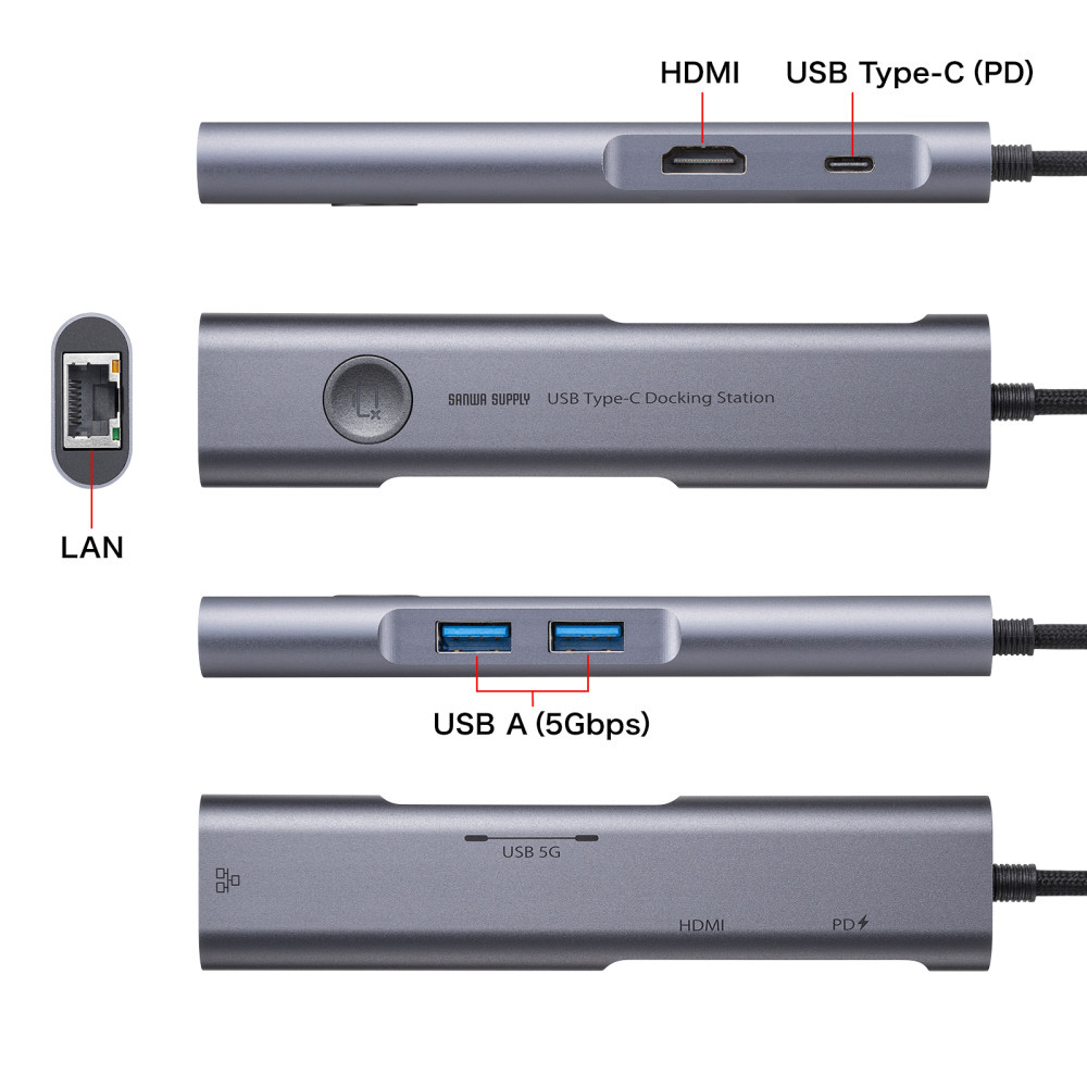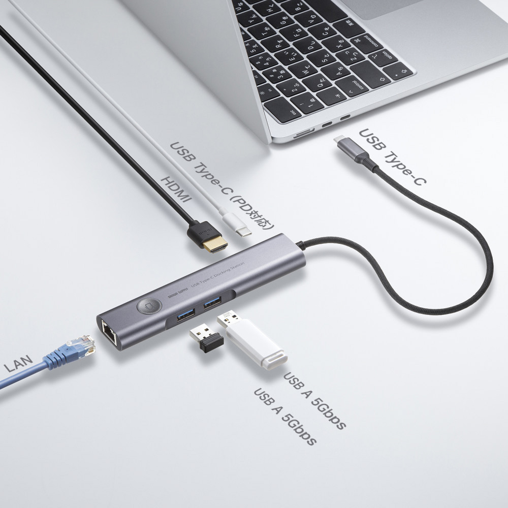 [USB-C オス→メス HDMI / LAN / USB-Ax2 / USB-C] USB PD対応 100W ドッキングステーション USB-5TCHLP16GM [USB Power Delivery対応] 【864】