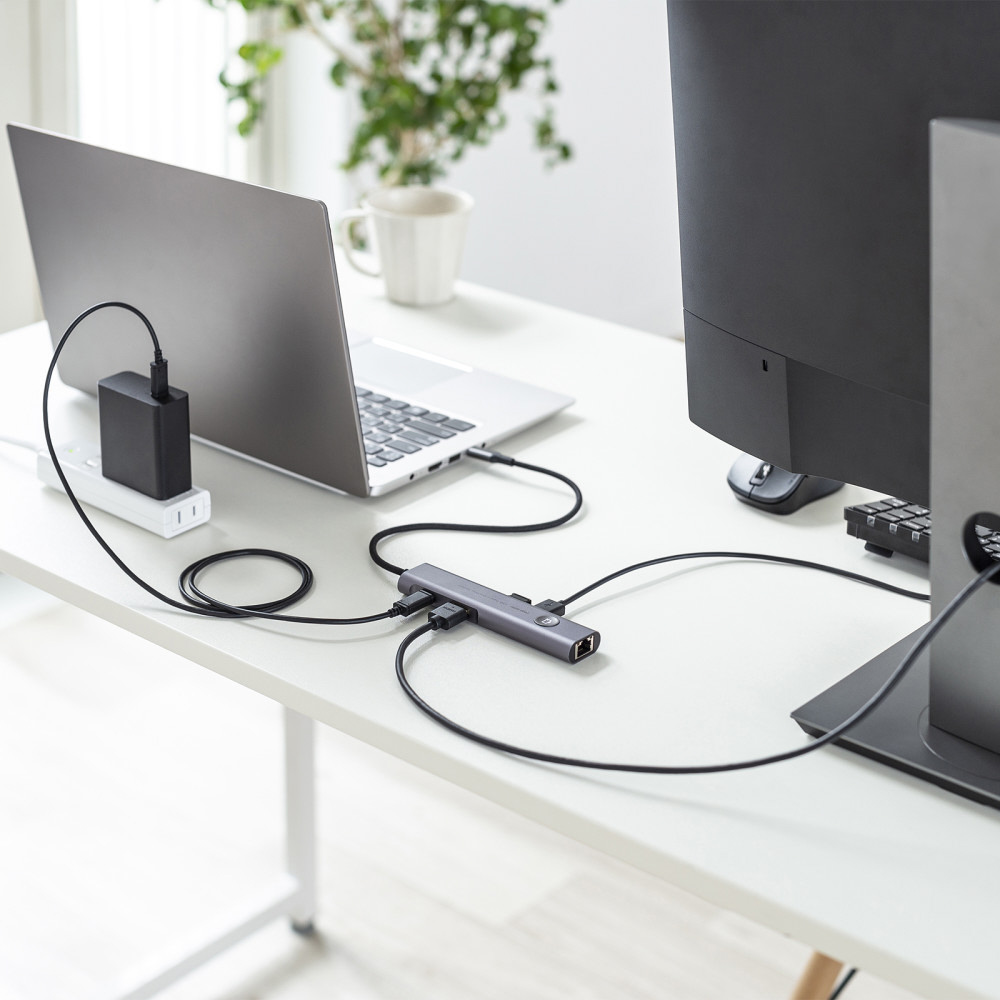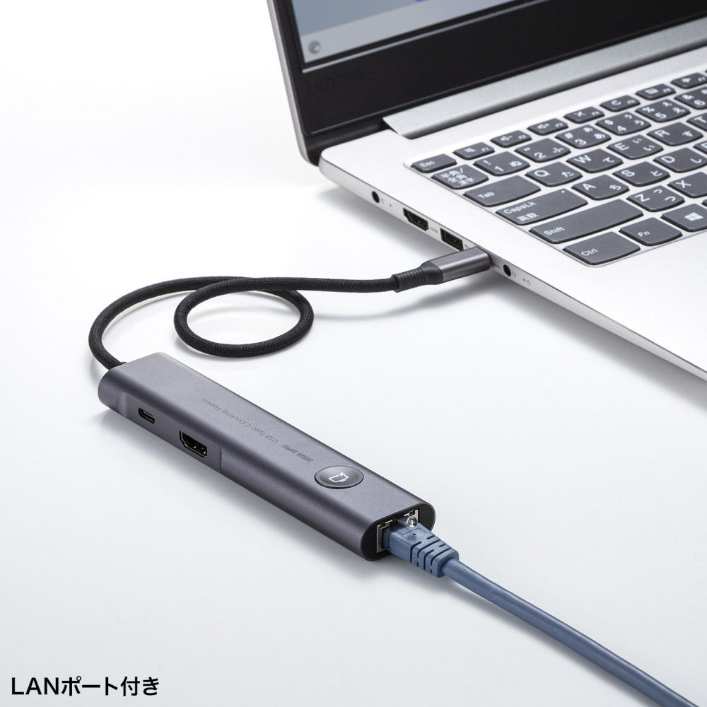 HDMI+LANポートを搭載したUSB TYPE-Cドッキングハブ。HDMI ON・OFFスイッチ付