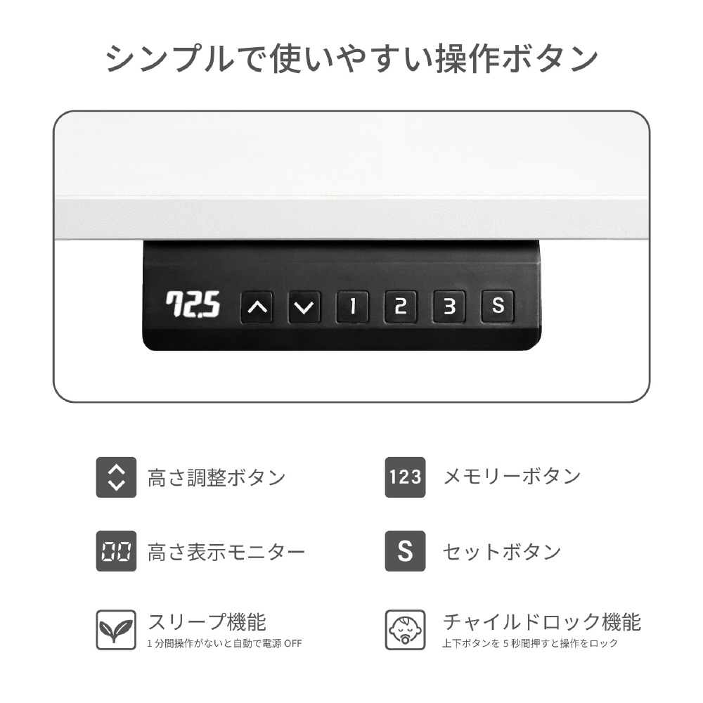 | 商品名 | 電動昇降デスク [W850xD450xH725〜1215mm] ホワイト EDKA8545W |
