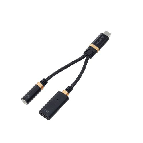 充電しながら音楽・動画視聴ができる。スマートフォンやタブレットなどのUSB Type-Cポートをφ3.5mmステレオミニジャックとUSB Type-Cポートの2つに変換。ハイレゾ対応音声変換ケーブルです。