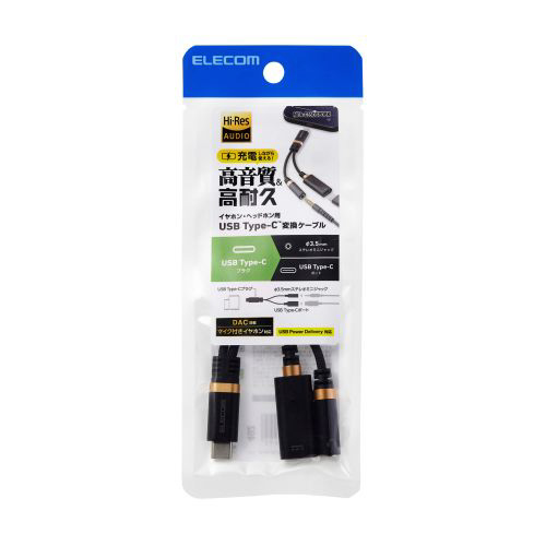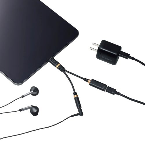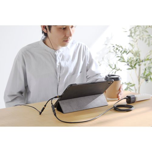 充電しながら音楽・動画視聴ができる!スマートフォンやタブレットなどのUSB Type-Cポートをφ3.5mmステレオミニジャックとUSB Type-Cポートの2つに変換する、ハイレゾ対応音声変換ケーブルです。DAC搭載でデジタル信号・アナログ信号の両方に対応し、断線しにくい高耐久ケーブルを採用しています。