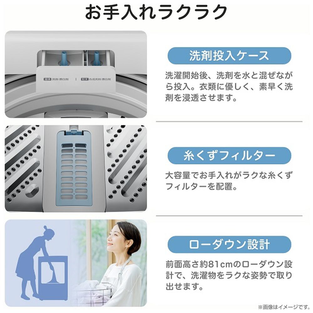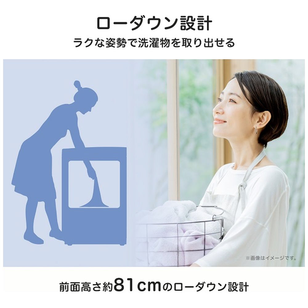 洗濯機の高さを従来の洗濯機よりも更に低く抑えたことで、ステンレス洗濯槽の底まで手が届きやすく、より洗濯物を取り出しやすくなりました。