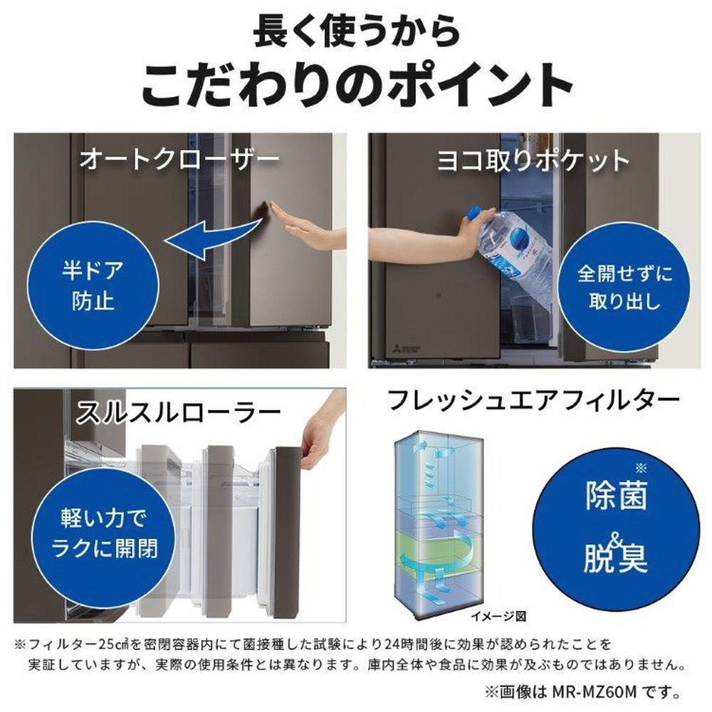 冷蔵庫 JWシリーズ シルクホワイト MR-JW50M-W [幅65cm /495L /6ドア /観音開きタイプ /2025年] 【基本設置料金セット】 【買い替え5000pt】
