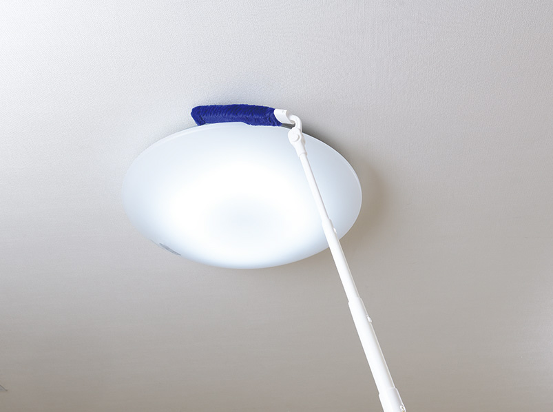 狭い階段でも取り回しのしやすいショート柄タイプです。棒状のモップなので、カーブしている階段の角等にも届きやすいです。モップはケースに通すとキレイになり、ホコリは徐々にまとまって溜まります。ケースがパカッと大きく開くので、溜まったホコリが簡単に捨てられます。自立して収納できるケース付きなので、階段の近く等で手に取りやすい場所に置きやすく、いつでもサッとお掃除できます。