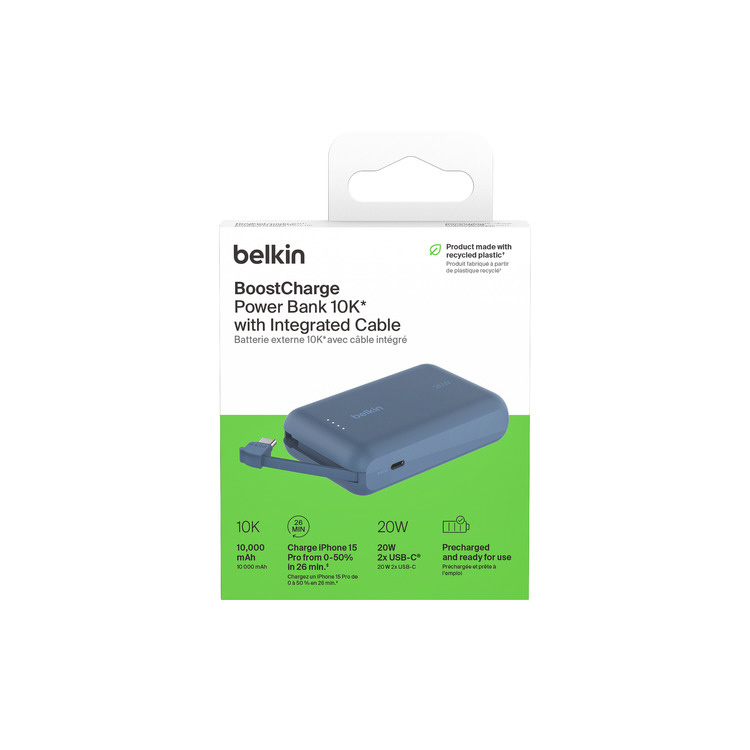 BoostCharge 20W ケーブル内蔵 モバイルバッテリー10000mAh ブルー ブルー