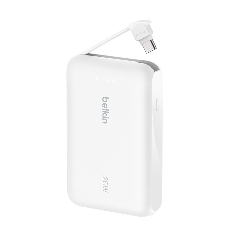 軽量で、最大20Wの充電に対応できます。一体型のUSB-Cケーブルを搭載しているため、外出先でも簡単に急速充電でき、ケーブルを持ち歩く必要はありません。USB-Cポートを使用すると、デバイスをもう1台同時に充電できます。