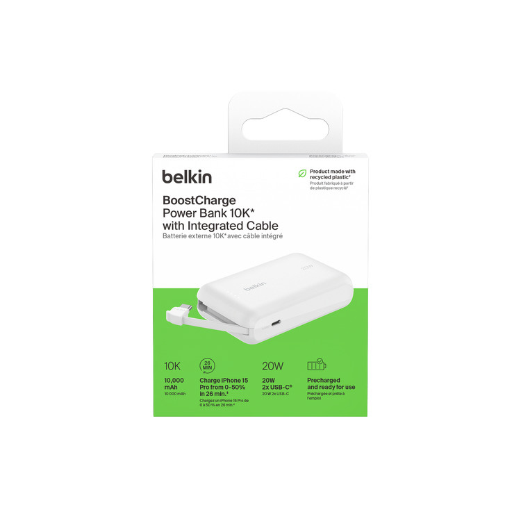 BoostCharge 20W ケーブル内蔵 モバイルバッテリー10000mAh ホワイト ホワイト