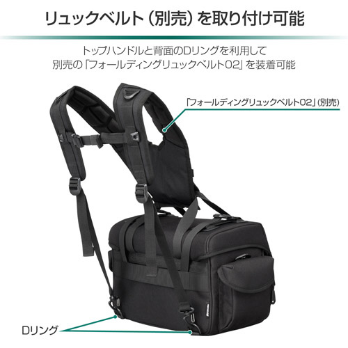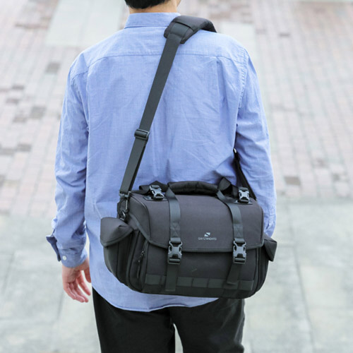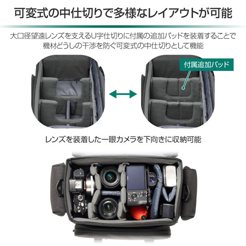 標準/中望遠レンズを装着したまま収納可能な大容量ショルダーバッグ